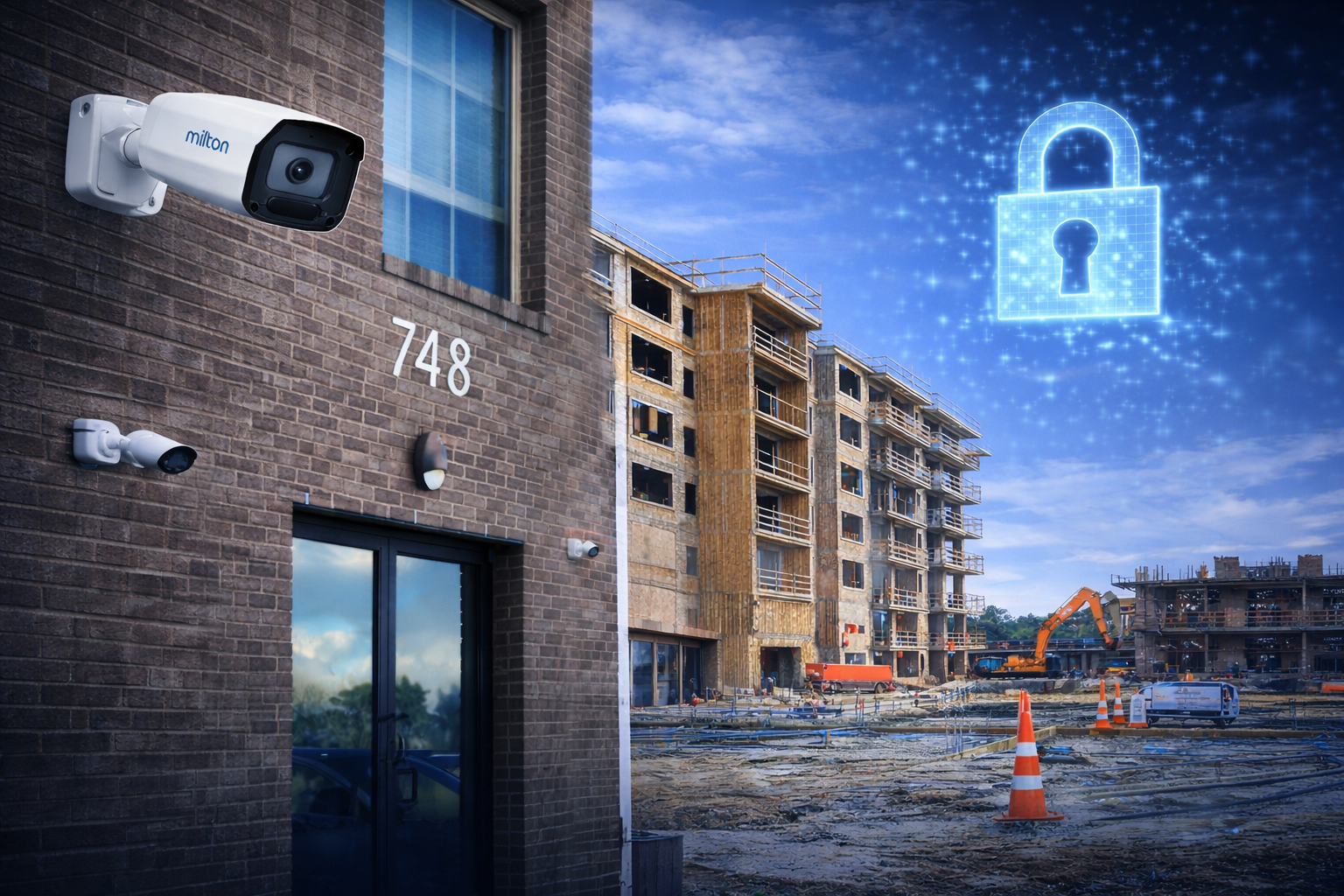 Construction sites face numerous risks, including theft, vandalism, and safety hazards. Milton Tech Commercial Security Systems provides comprehensive construction site security systems to safeguard your assets, protect workers, and keep projects on schedule. As a licensed and insured team, we offer tailored solutions to address the unique security challenges of construction sites. Our construction site security services include: